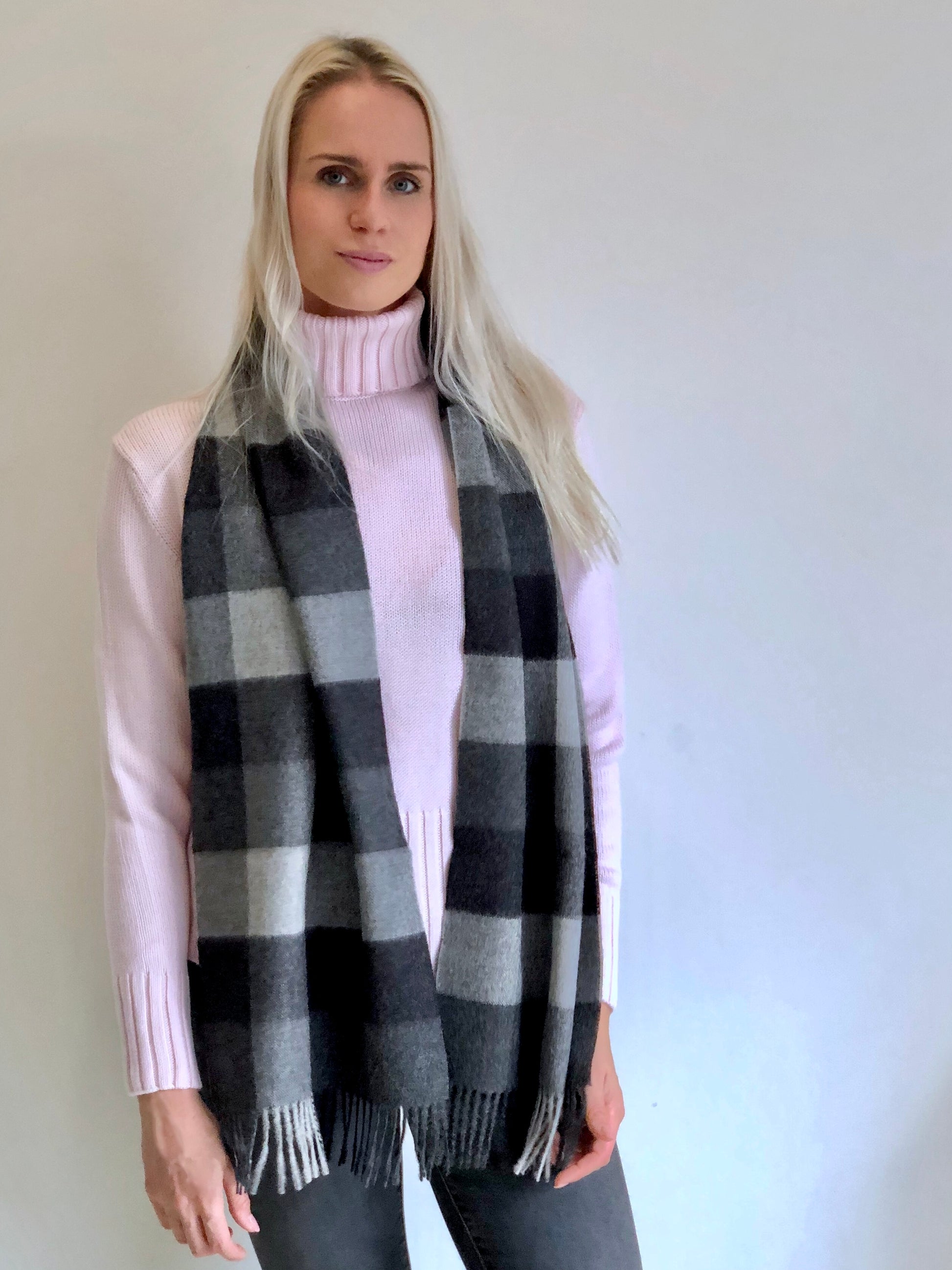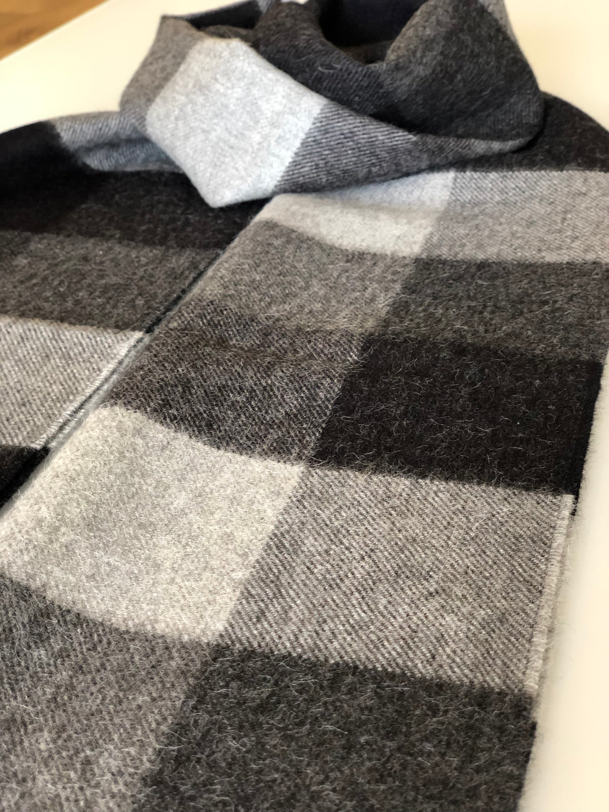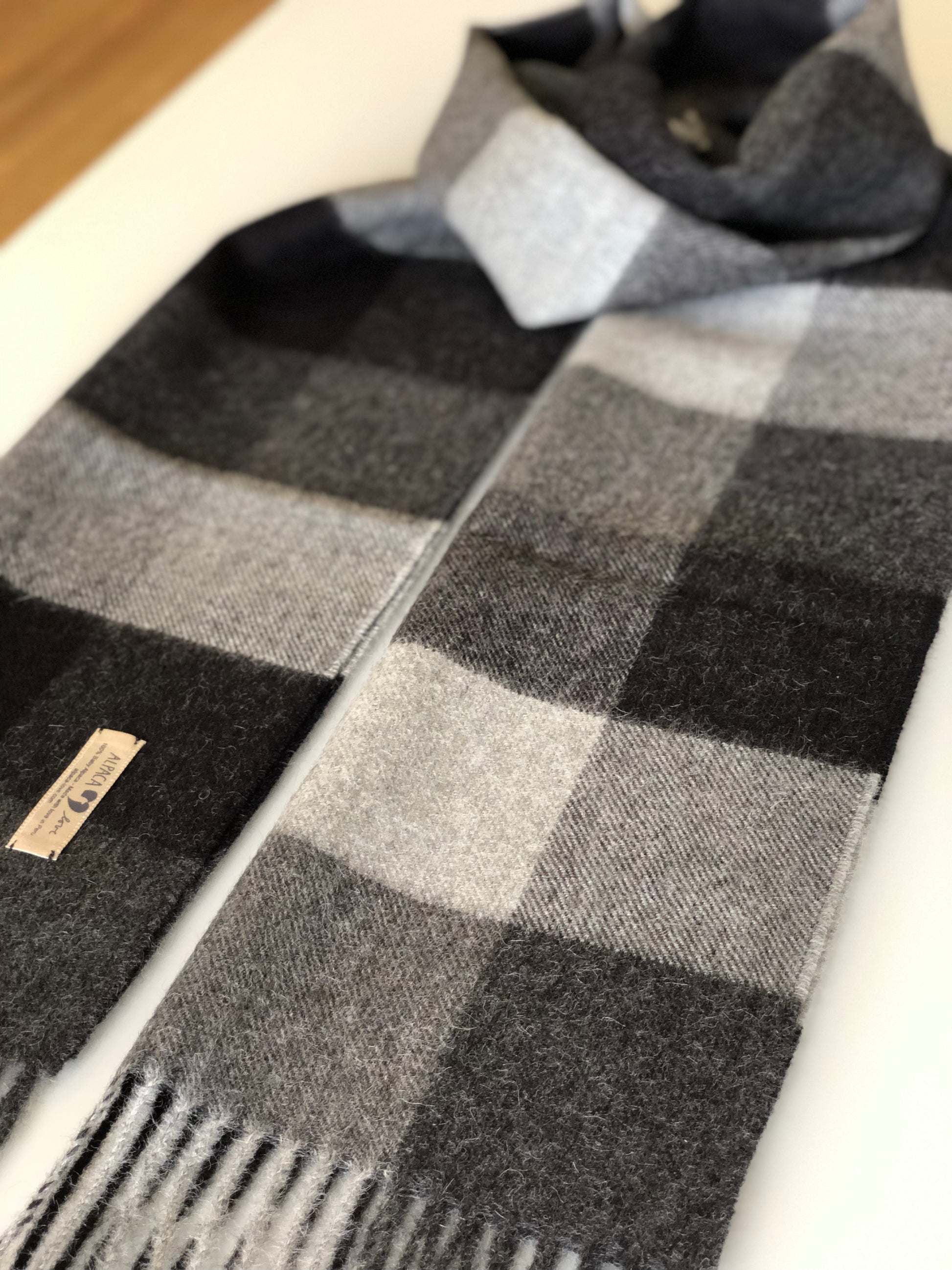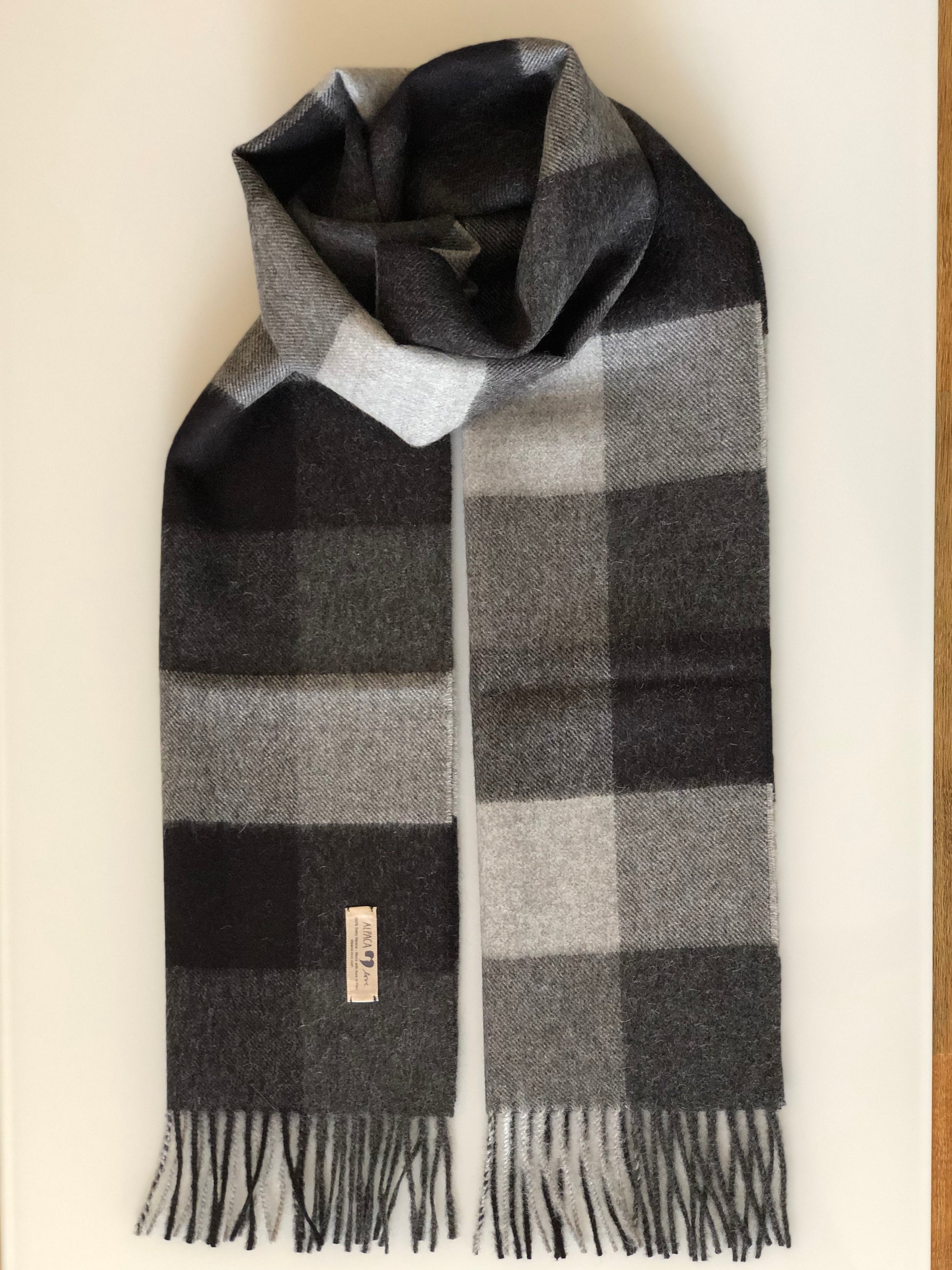 Dieser wunderschöne Schal in der klassischen Farbe grauschwarz und Karomuster ist aus 100% Baby Alpaka Wolle. Er ist der ideale Begleiter für die kalte Jahreszeit. Der Schal ist sehr stylisch, weich, besonders kuschelig und wärmt ausgezeichnet.