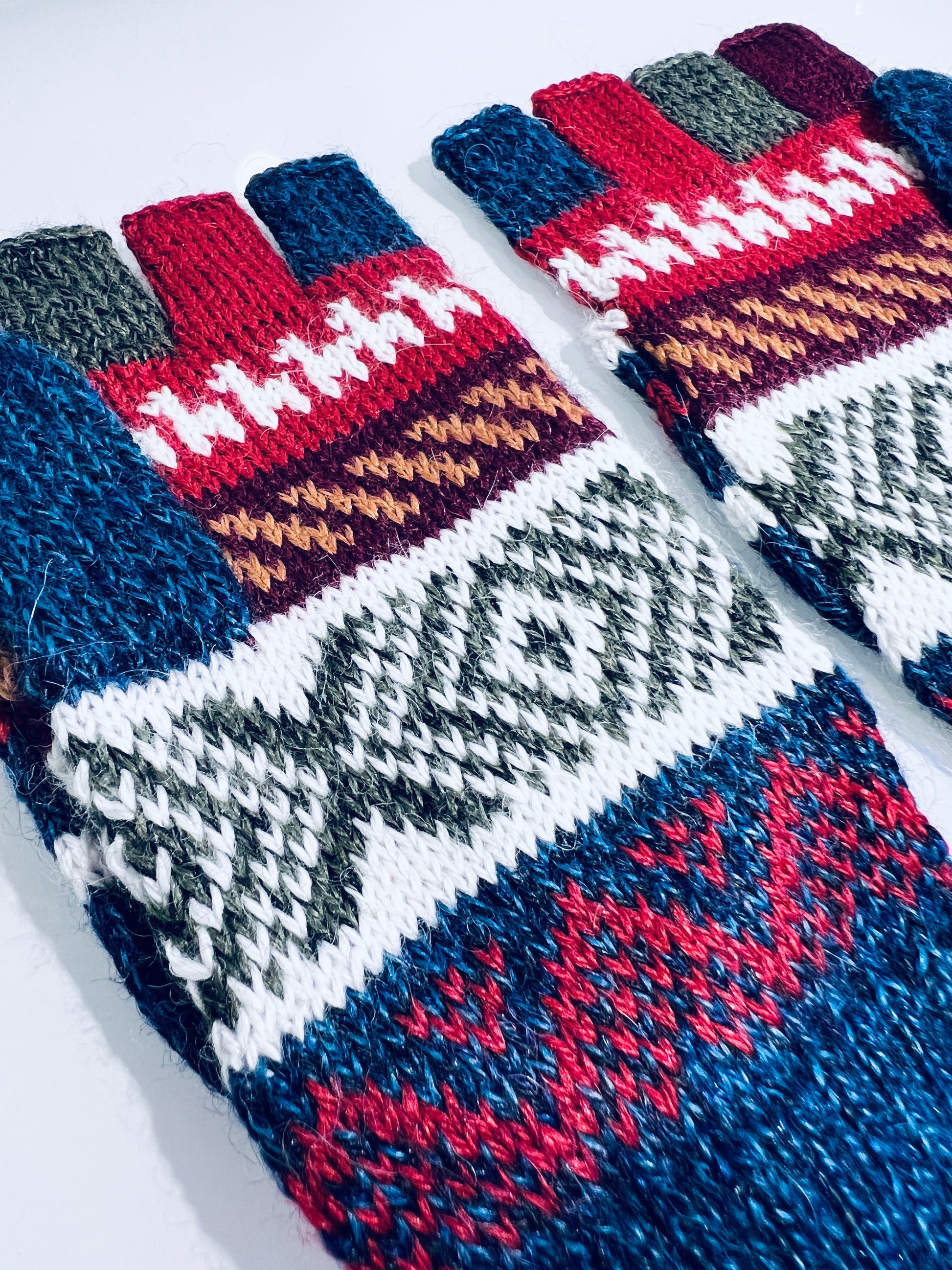 Die liebevoll gefertigten Handschuhe in traditionellen Andenfarben – Rot, Marine, Oliv und Creme – bieten dir nicht nur außergewöhnliche Weichheit, sondern auch durchdachte Funktionalität: