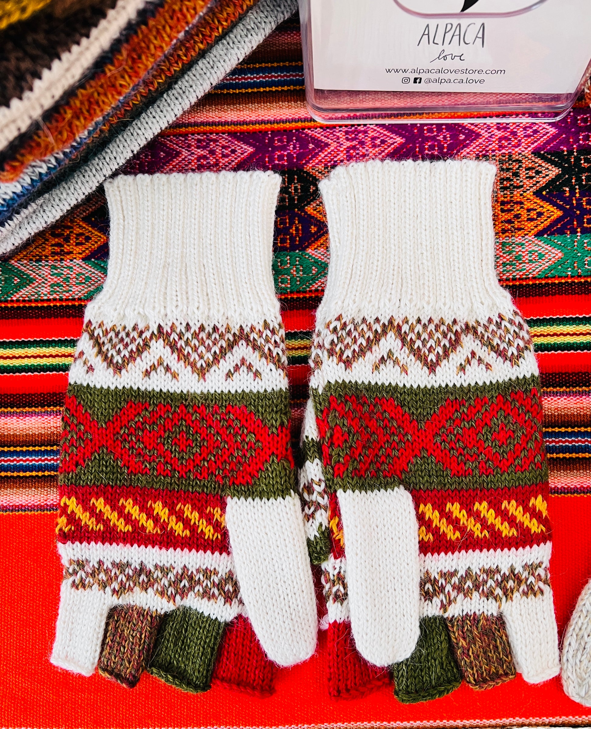 Die liebevoll gefertigten Handschuhe in traditionellen Andenfarben – Rot, Marine, Oliv und Creme – bieten dir nicht nur außergewöhnliche Weichheit, sondern auch durchdachte Funktionalität: