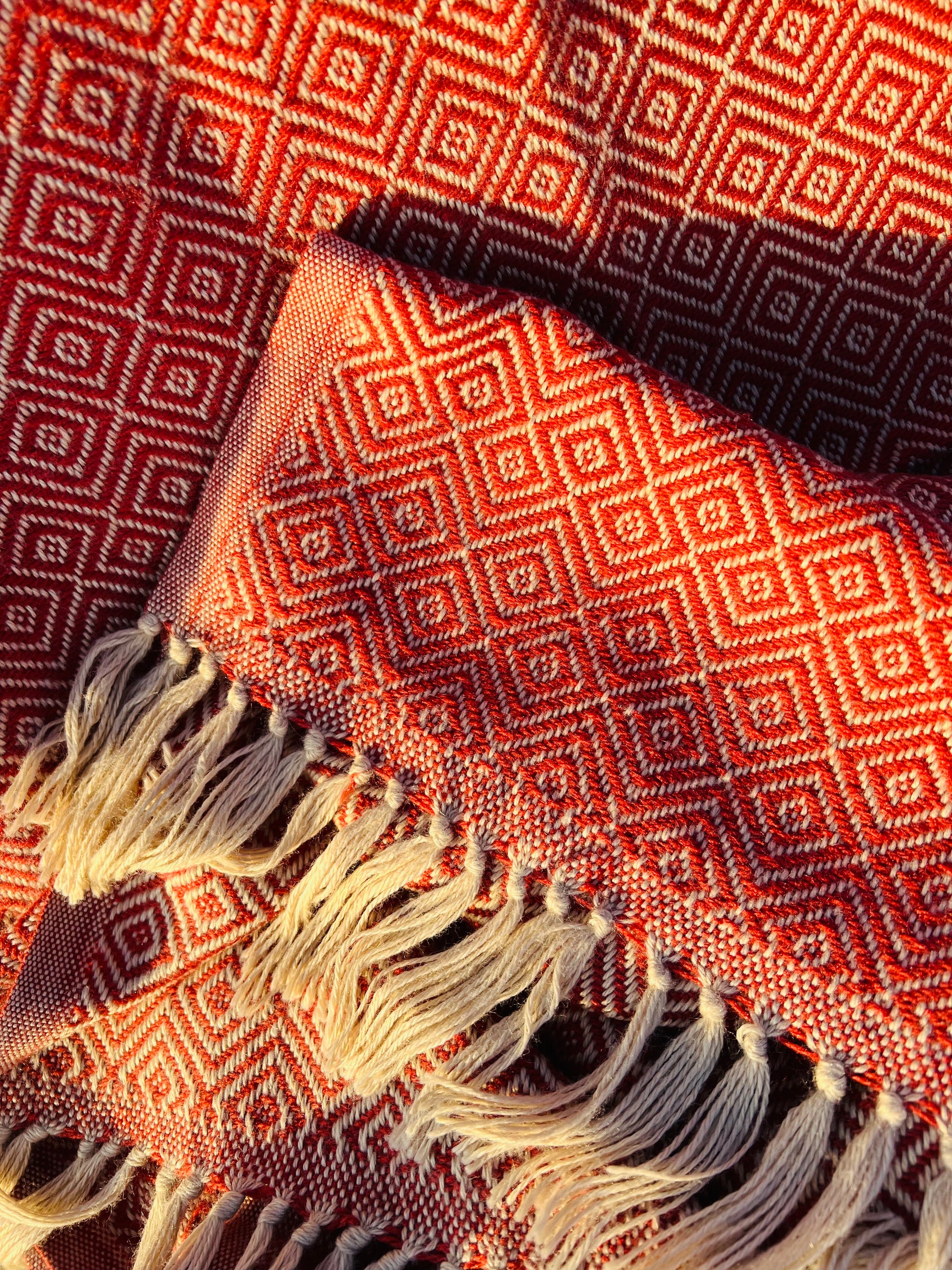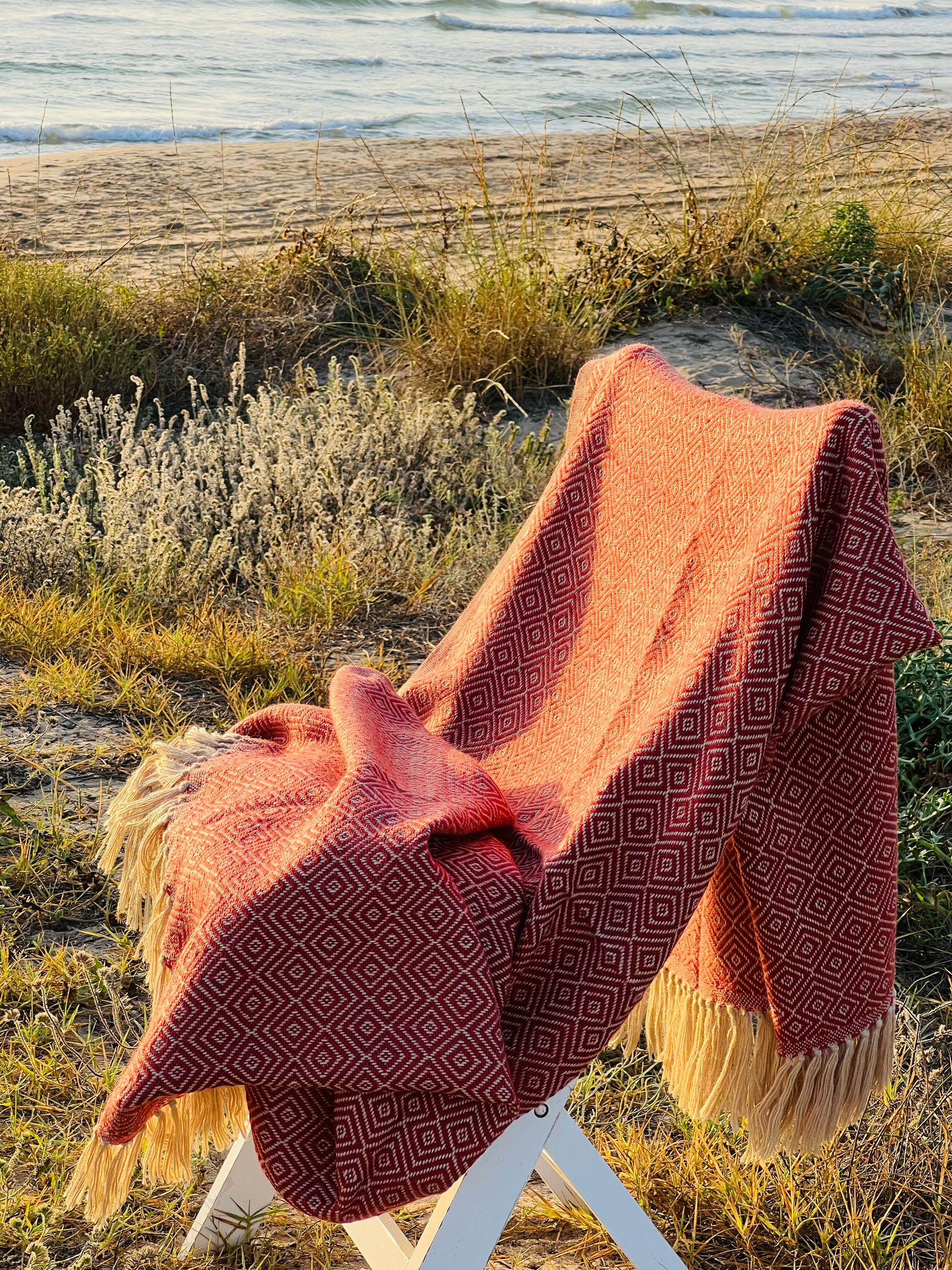Alpaka Decke aus 100% Baby Alpaka Wolle Orange-beige
