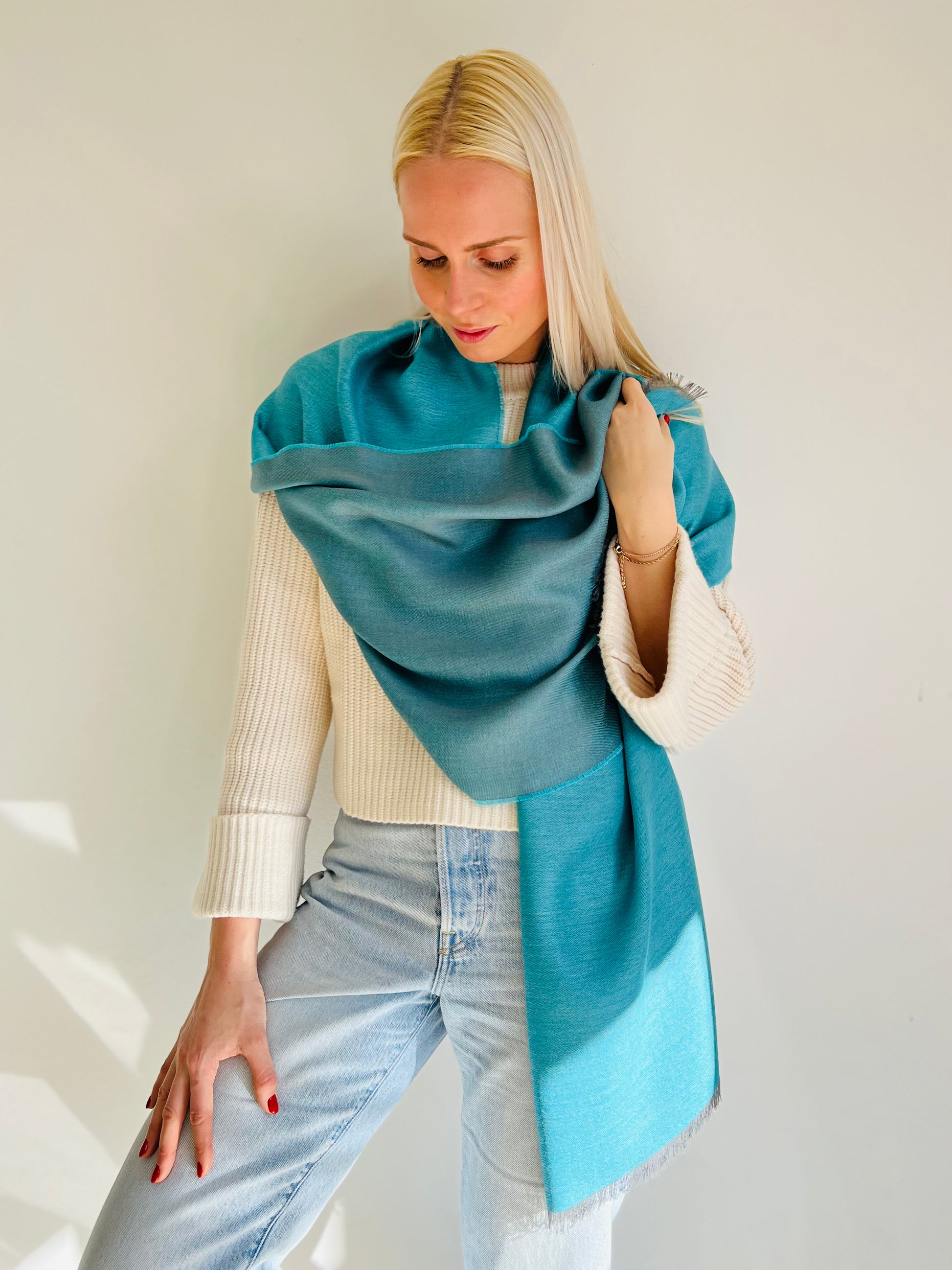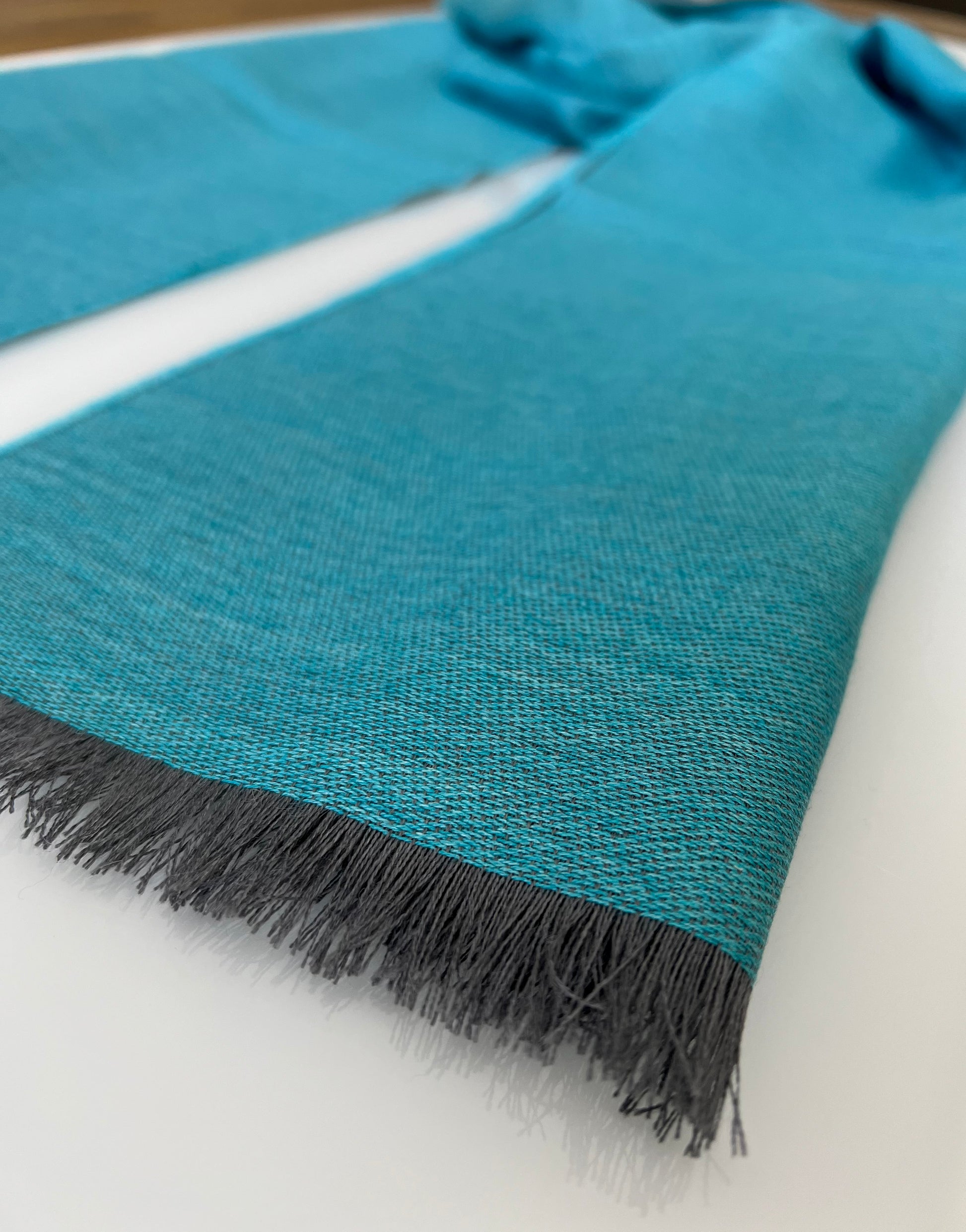 Hier ist unser wunderschöner Schal aus 70% Baby Alpaka Wolle und 30% Seide in den wunderschönen Farben Grün und grau. Der Schal ist sehr stylisch und ein Hingucker. Er ist der ideale Begleiter für das Frühjahr, den Sommer und den Herbst. Durch den Seidenanteil ist der Schal ist besonders weich und kuschelig.