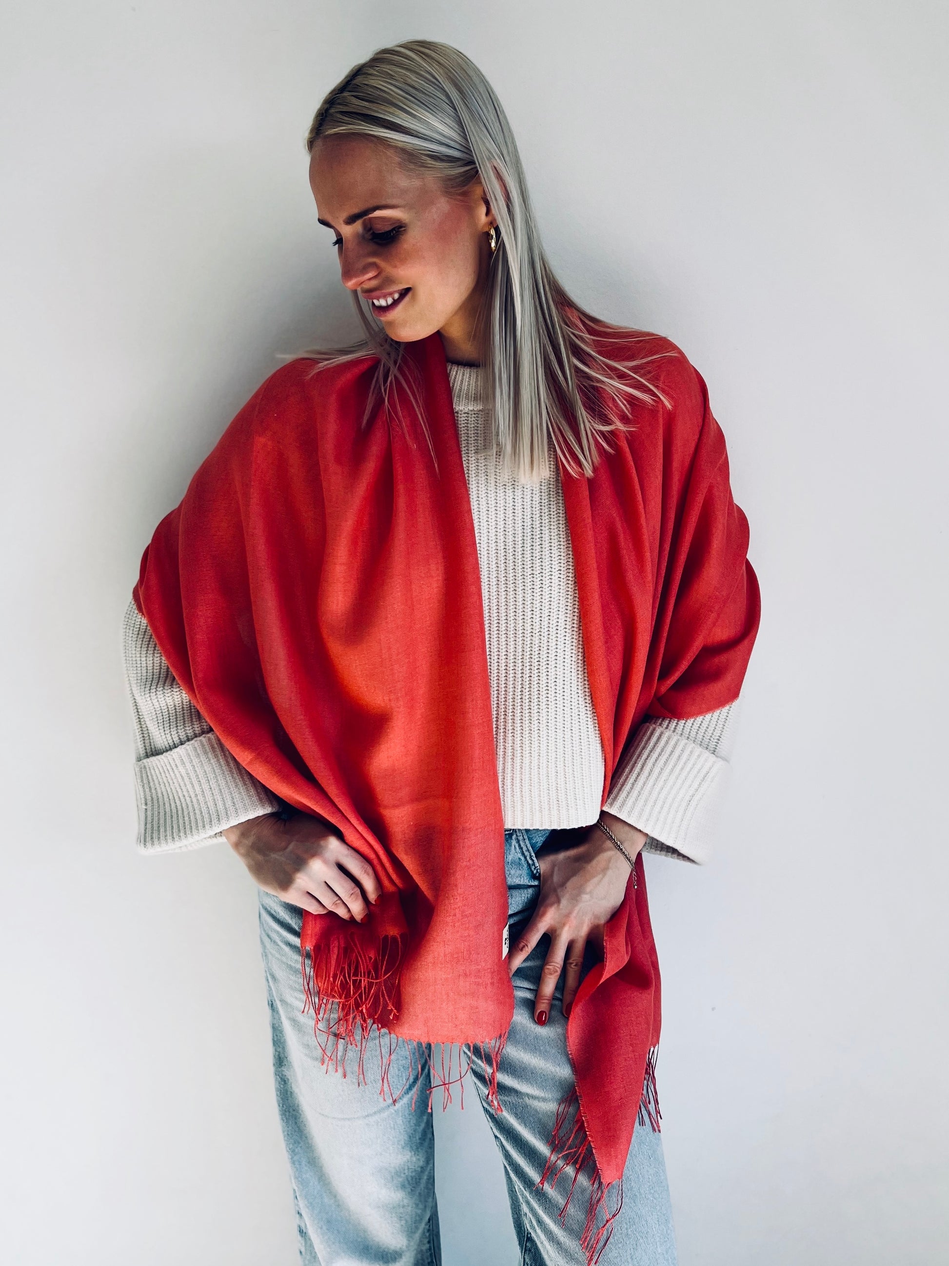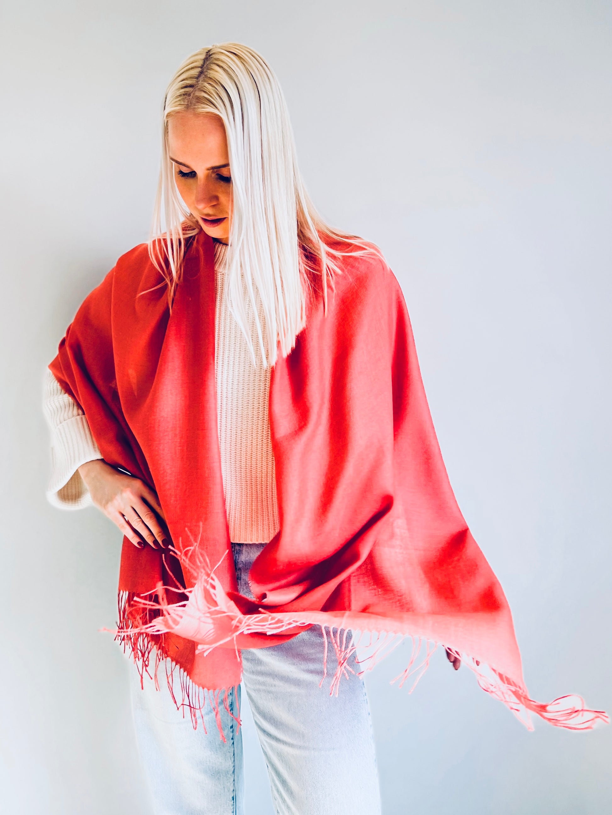 Stola 70% Baby Alpaka Wolle 30% Seide Coral