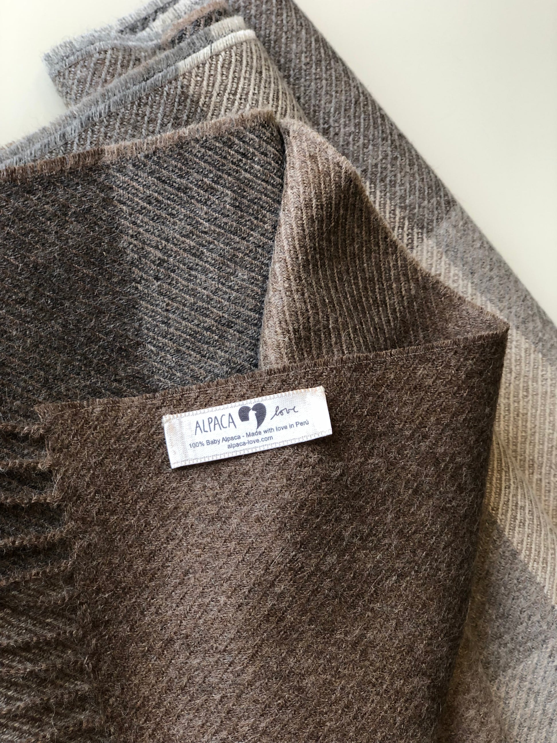 Stola Grau-Braun 100% Baby Alpaka Wolle