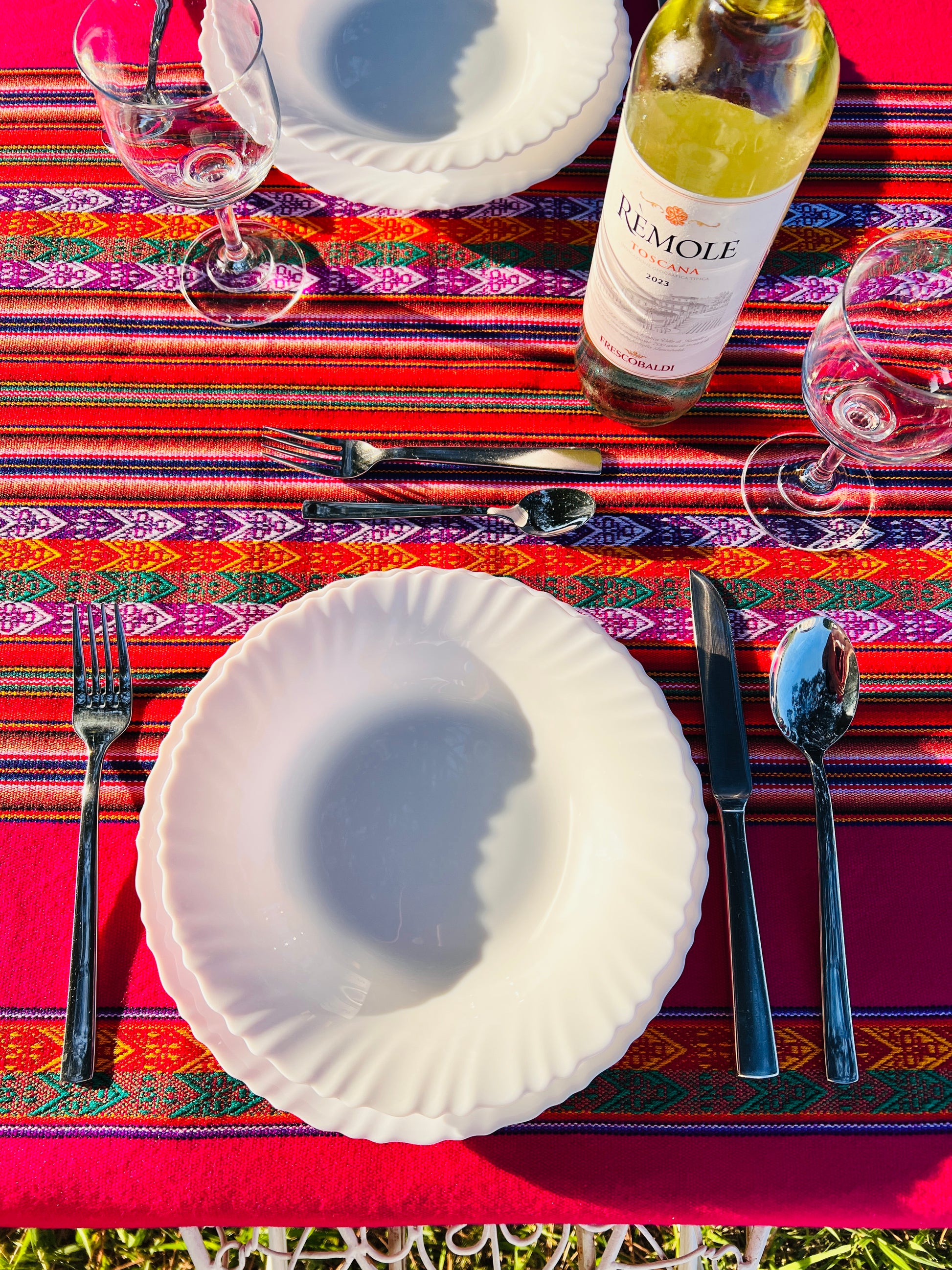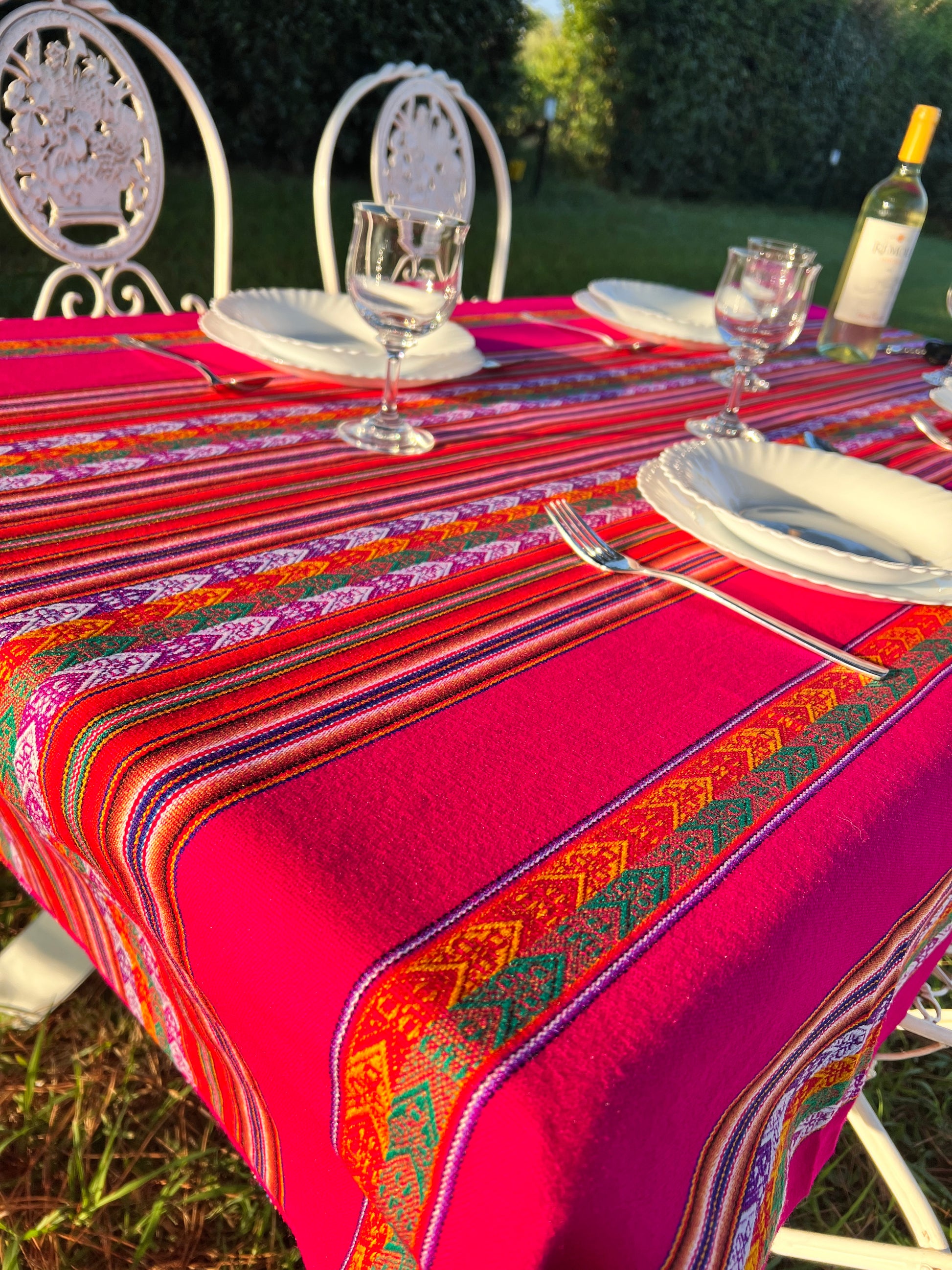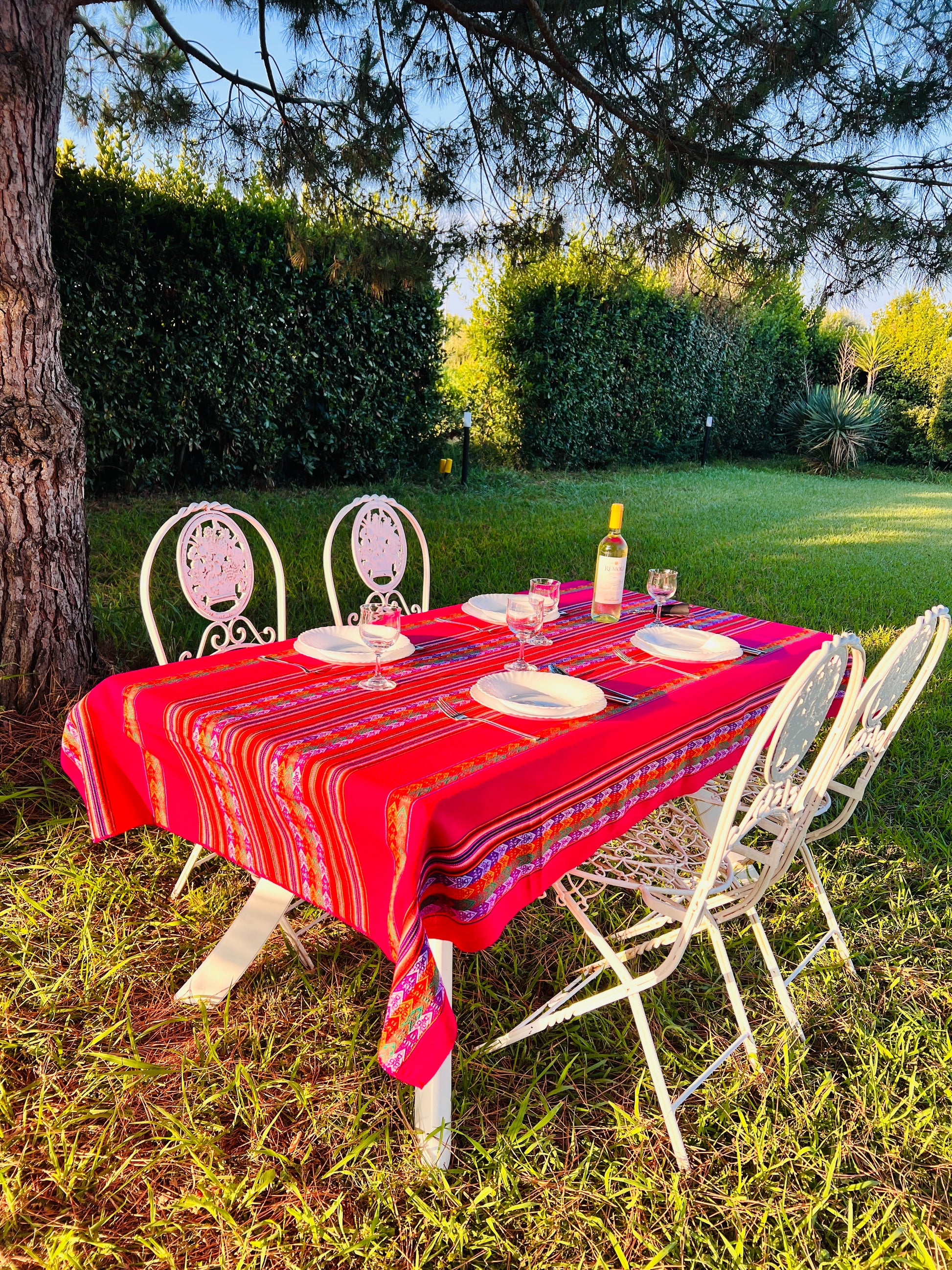 Ideal für ein Festmahl! Hier ist unsere wunderschöne farbenfrohe Tischdecke mit bunten Linienmustern. Die edle rote Tischdecke wird Ihr Essbereich fröhlich hervorheben und ein Hingucker für Ihre Gäste sein.