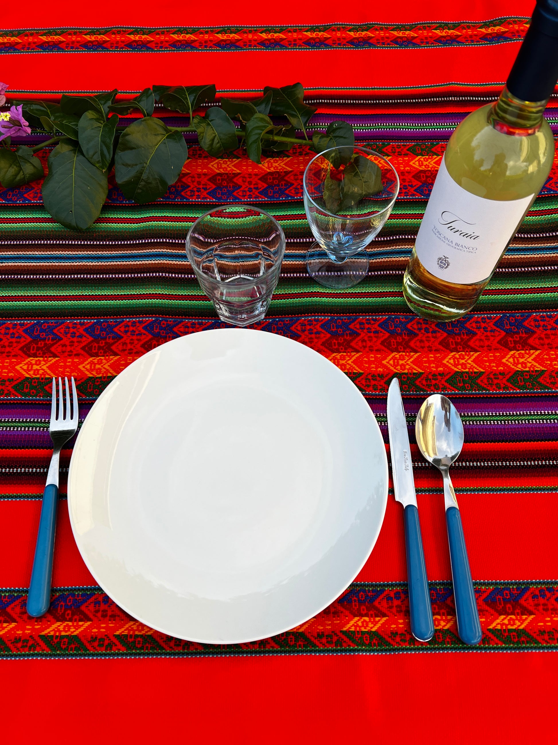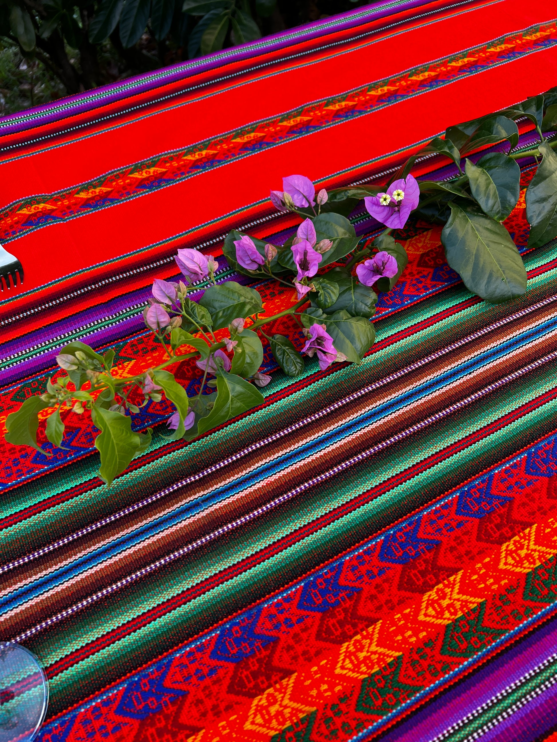Ideal für ein Festmahl! Hier ist unsere wunderschöne farbenfrohe Tischdecke mit bunten Linienmustern. Die edle orangene Tischdecke wird Ihr Essbereich fröhlich hervorheben und ein Hingucker für Ihre Gäste sein.